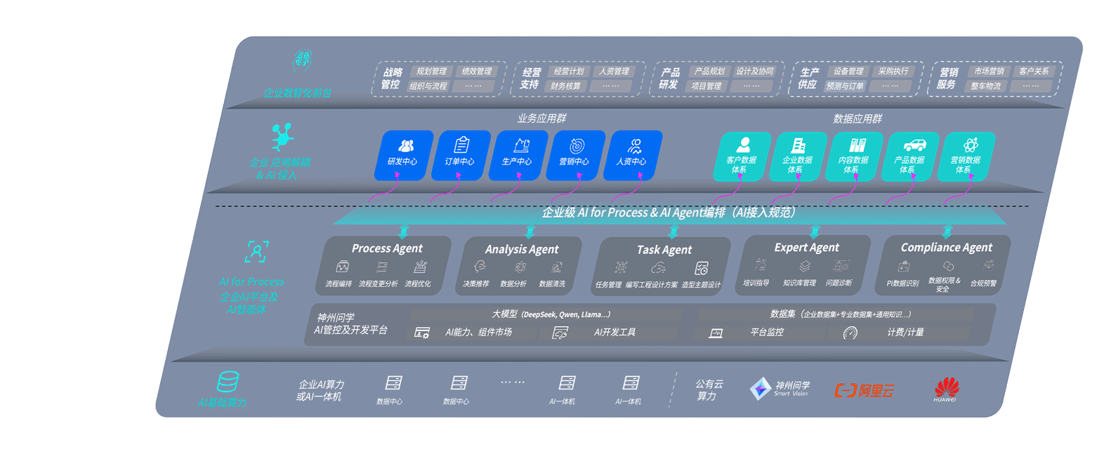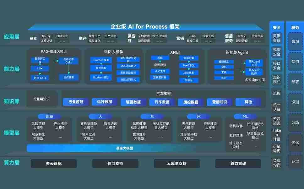 尊龙集团问学智车解决方案是一套基于AI技术的汽车行业智能化系统,,覆盖从底层算力到顶层AI应用的全栈方案。。。方案由算力层、、、、模型层和应用层组成:算力层,,方案支持多种一体机配置,,具备云端灵活部署、、多云适配以及动态优化计算资源的能力;模型层,,,,尊龙集团问学平台版提供了企业级AI应用一站式构建与管理平台,,支持基于后训练强化技术的汽车企业专属模型的训练、、、、评测和运营;应用层,,,尊龙集团问学DeepSeek版提供包括超级员工、、、、智能招采、、、、智能营销、、、智能客服、、、、AI for BI等一系列解决方案,,,可助力汽车行业实现数字化转型,,,让管理更智能、、、、响应更敏捷。。。。